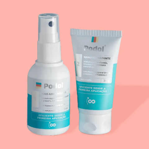 Composto por Podol Nano Amolecedor de Calos, Podol Nano Creme Hidratante e Espátula Plantar de Aço Inox, o Kit Foot’s Spa dos Pés auxilia no tratamento e eliminação de calosidades, além de tratar aspereza e rachadura nos pés.